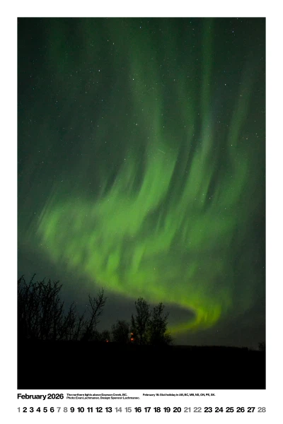 A large wall calendar featuring photography by Evan Lachmanec. Designed to showcase Evan’s photos and preserve his original compositions uncropped, the dates of the month are aligned in a single row at the bottom of each page.