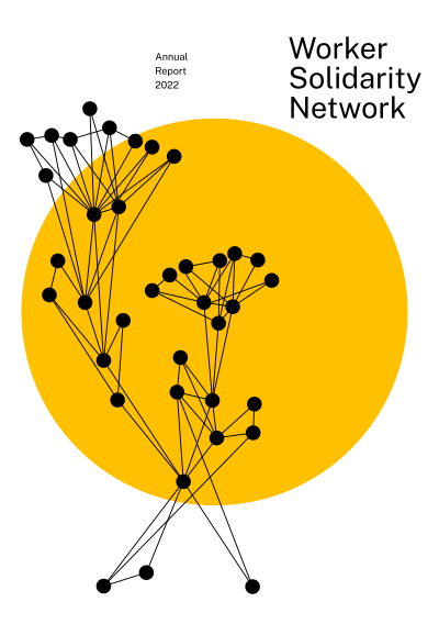 The Worker Solidarity Network supports and advocates for non-unionized workers. The 2022 annual report was mailed to attendees of that year’s AGM. Due to WSN not having many print-quality photos, visual interest is achieved primarily through the use of typographic scale and data visualizations.